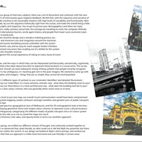 process: images taken of tourist locations, interviews conducted w/ train users, semiotics/symbolism of pictograms developed, 2D vector / 3D pixel maps created, touch-screen machine interface designed
